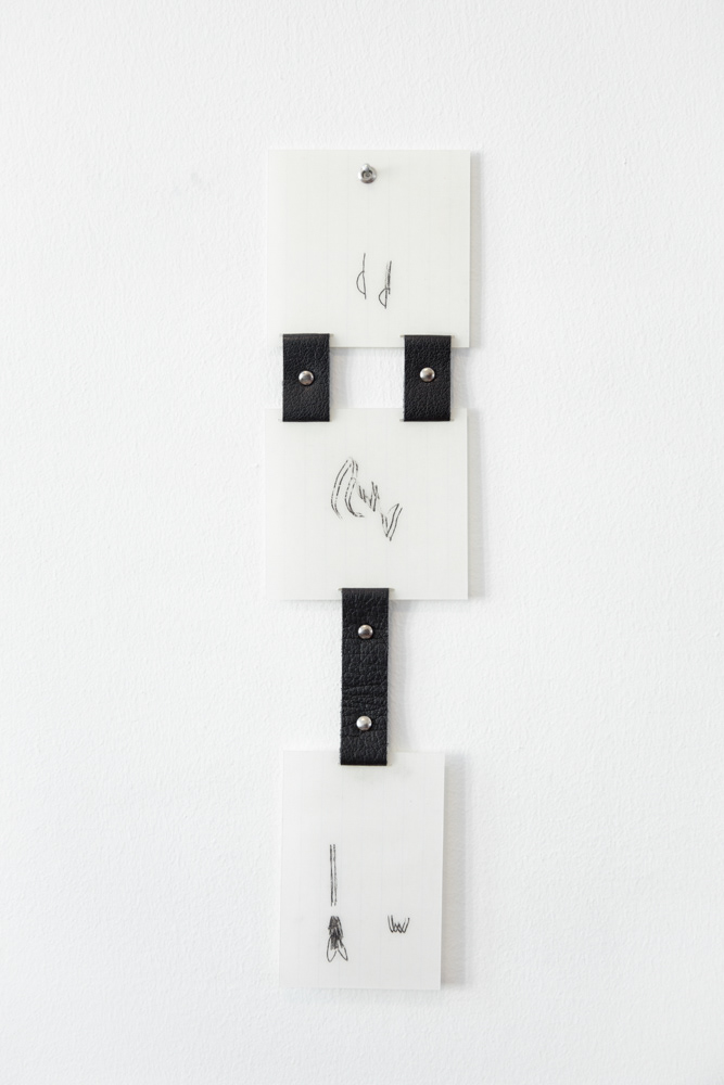 plastic coated brochures and waxed carbon pigment on paper, leather, metals, and piercings