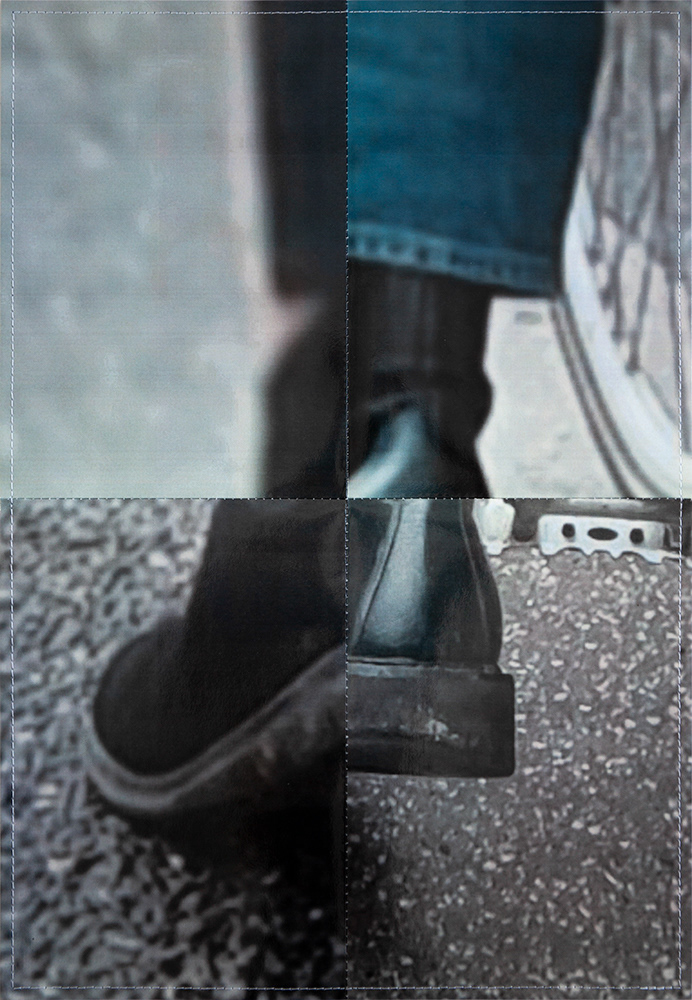 Yinon Avior's photography distorts and alters the images he captures: he crops, cuts, sutures, and laminates his images to create a made–up, makeshift work of art, queer in its nature and its interpretations. In Still Standing: Dancing Queen Denmark, Avior has taken hundreds of images of bikers coming to a momentary halt, extending one foot to balance on the pavement. Pictured from ground level, behind the bikers, he focuses on this moment of tension, in which one seeks to find solid ground but is simultaneously preparing to depart—an allegory for the uncertainty of the migratory experience.