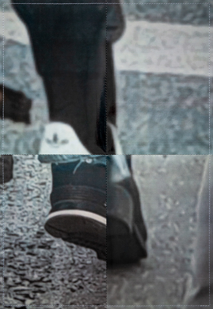 The sewn–together images create a quilt–like aesthetic in an immersive installation, whose goal is not to be contained by a single wall but to “spread”, with all its connotations related to virality and queer history. Avior creates a link between the experience of migration and queer aesthetics, commenting on the ambiguity that accompanies departure and the efforts required to put oneself together again after a traumatic event.